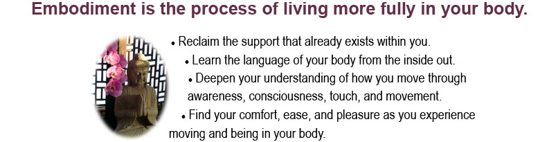 As a certified practitioner with 30 years of experience using multiple healing modalities, I offer a unique blend of Body-Mind Centering®, Movement, Yoga, Rolfing®, Feldenkrais® and Franklin Method®. I have woven these modalities into a unique process called Living Embodied. |
